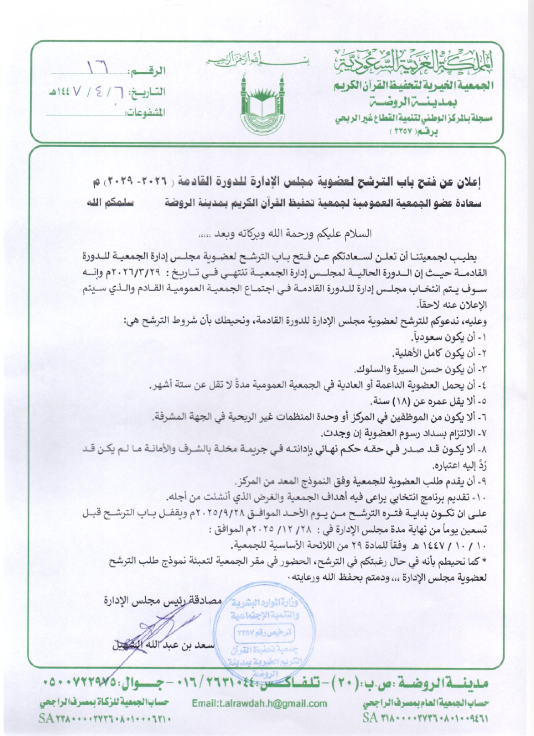 الجمعية الخيرية لتحفيظ القرآن الكريم بالروضة، جمعية سعودية غير ربحية تحت إشراف وزارة الموارد البشرية والتنمية الاجتماعية، مسجلة برقم (3357)، تهدف إلى تحفيظ وتعليم المسلمين كتاب الله تعالى حفظاً وتلاوة وتجويداً.